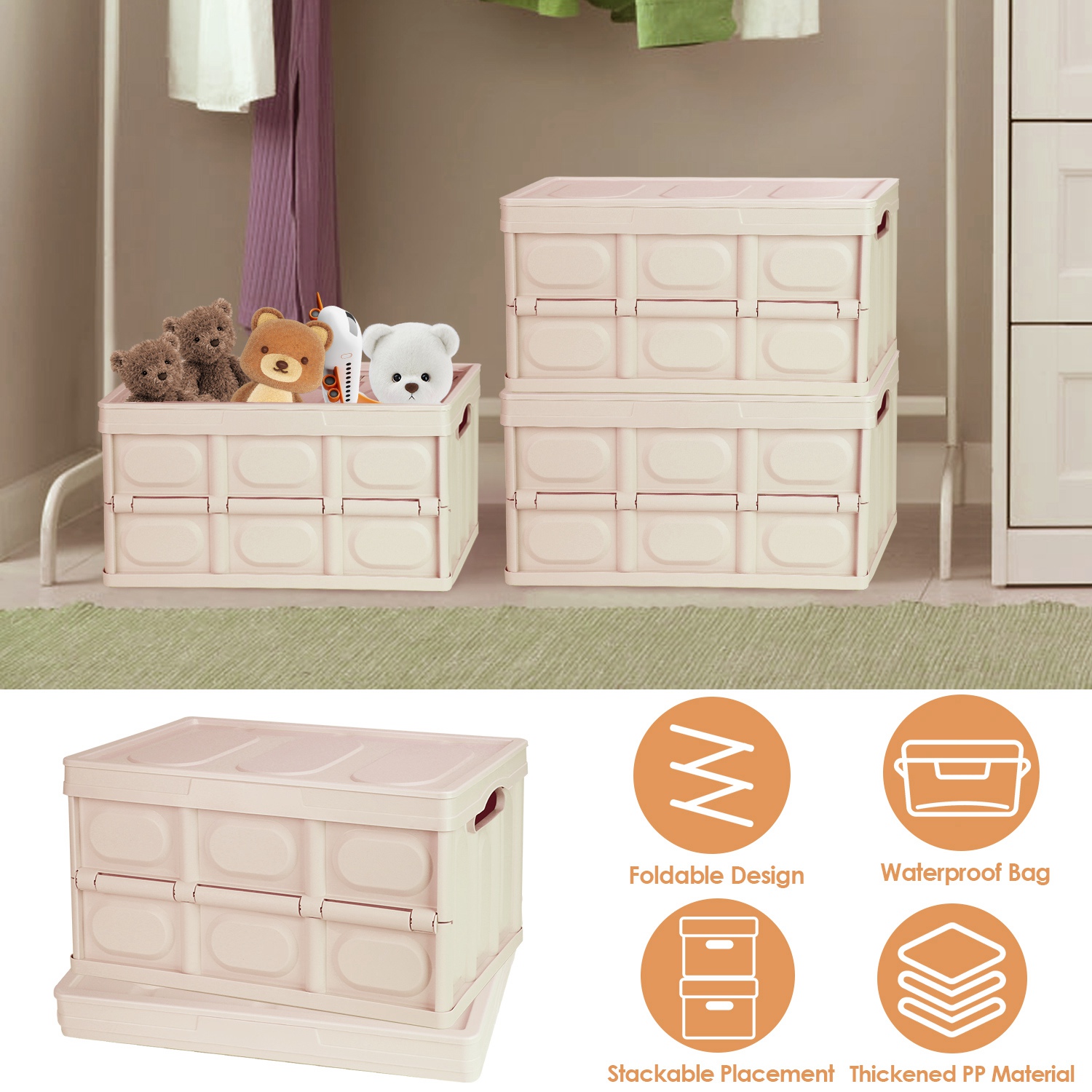 Are you tired of cluttered spaces and struggling to find a reliable storage solution? Our foldable storage bins are made of thickened sturdy PP material has 3 color options and 2 size options, meeting your various preference and storage needs. The space-saving foldable and stackable design makes these plastic utility containers an ideal choice for daily family storage, like bathroom organizer, toy storage, car organizer, bedroom storage, snack organizer, book bins. Additionally, the removable waterproof bag makes our collapsible storage boxes perfect for outdoor activities, serve as temporary fishing box or cooler box for picnic.