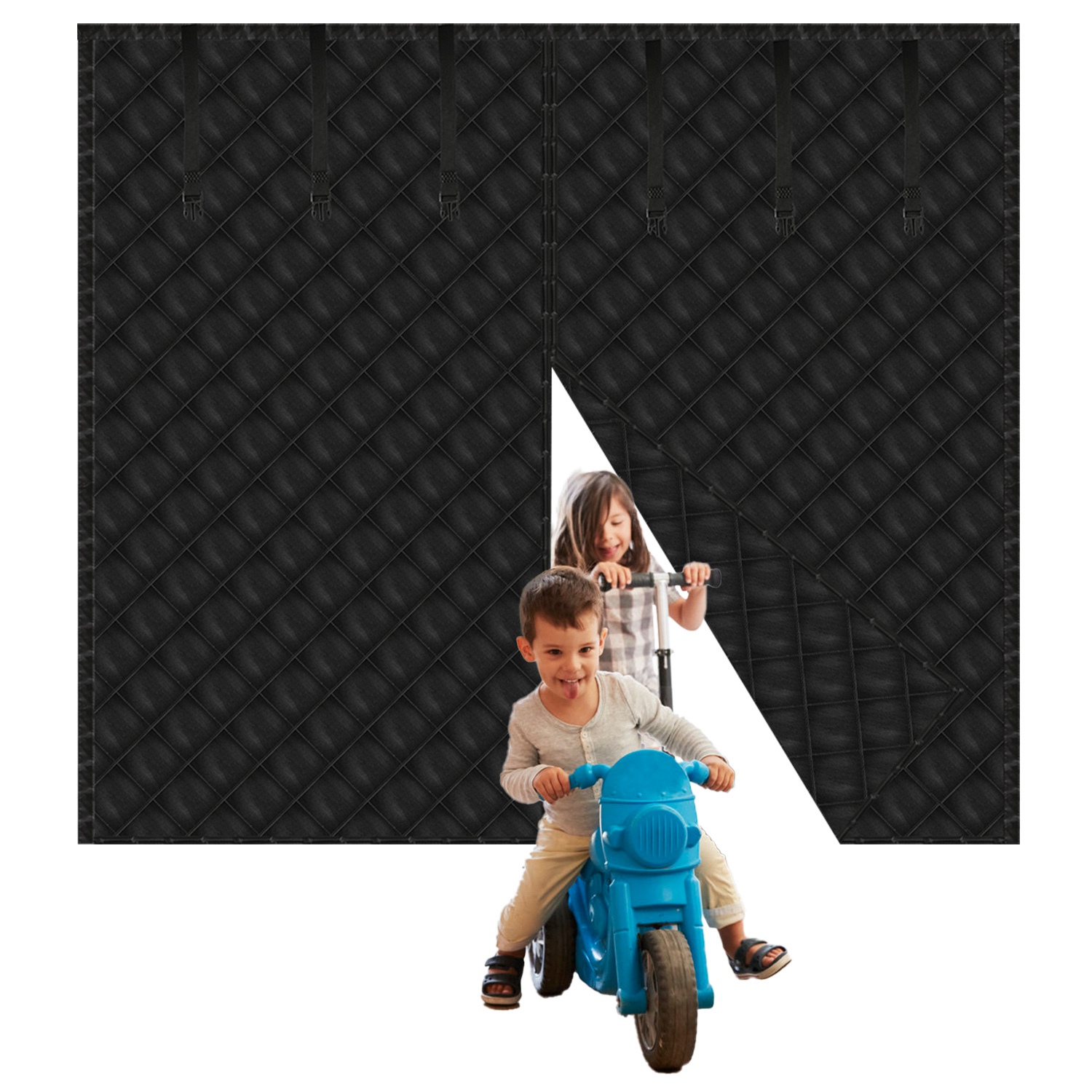 Constructed with a 3-layer thermal insulated structure, our garage door screen provides excellent sealing to prevent cold air infiltration, crucial for maintaining a warm indoor temperature in winter or preserving cold air in summer, thus to lowering energy consumption and electricity bills. With 48 strong magnets along the middle seam, it closes automatically for optimal sealing. Bottom gravity sticks ensure windproof performance while allowing easy passage for kids and pets while top buckle straps enable rolling up the screen for vehicle entry and exit. Please measure your garage twice before ordering to select the perfect size, leaving extra length and width for the top and side frames.