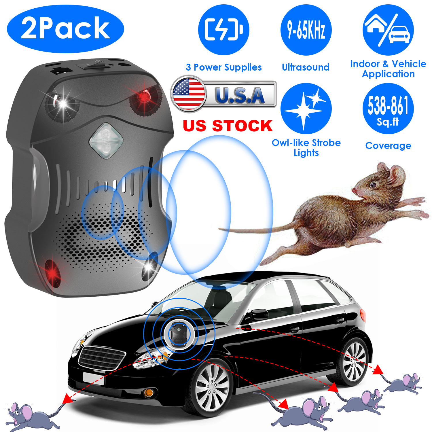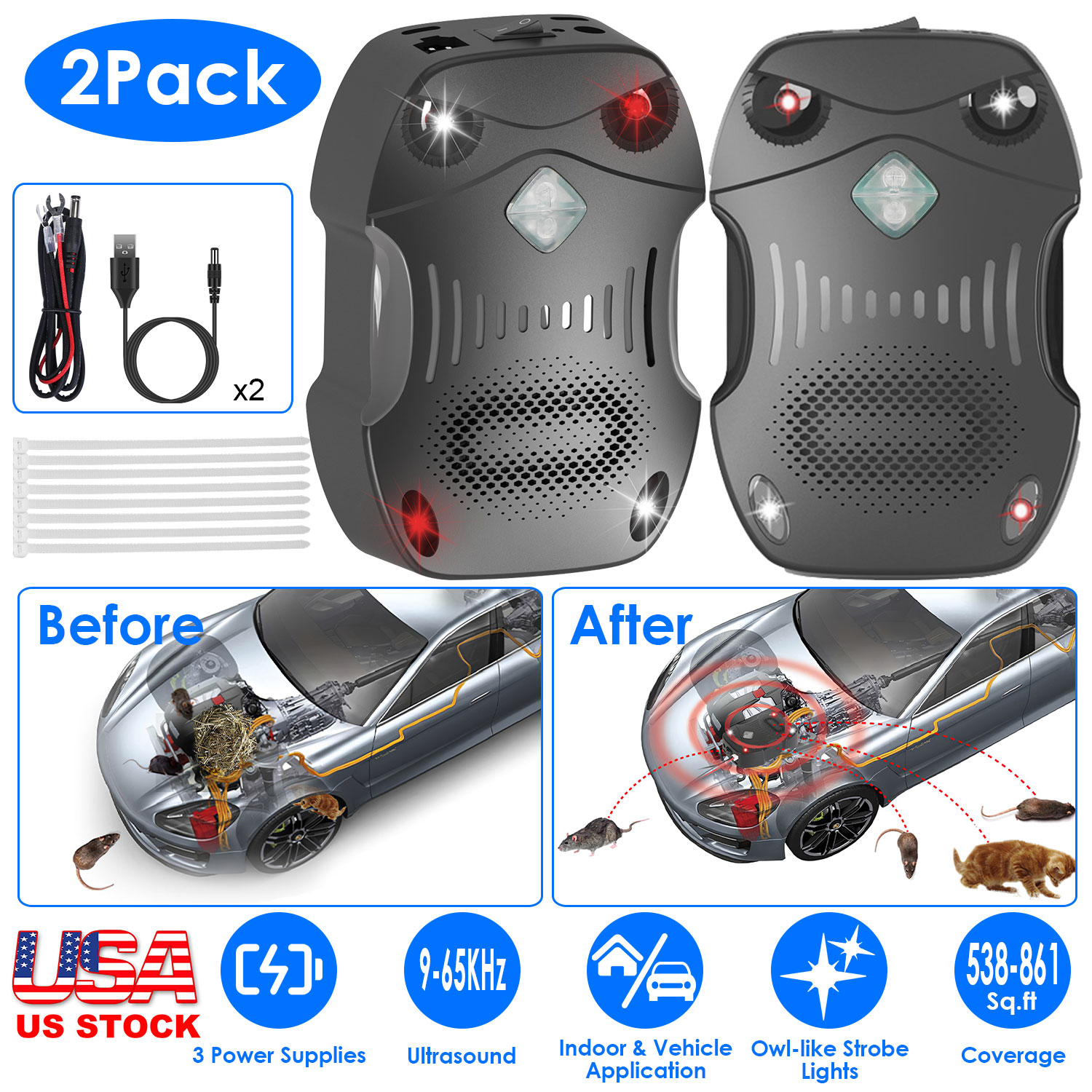 Home > 2 Pack Under Hood Ultrasonic Rodent Repeller Rodent Control Deterrent Chaser Blocker for Vehicle Indoor with Strobe Light 3 Power Supplies