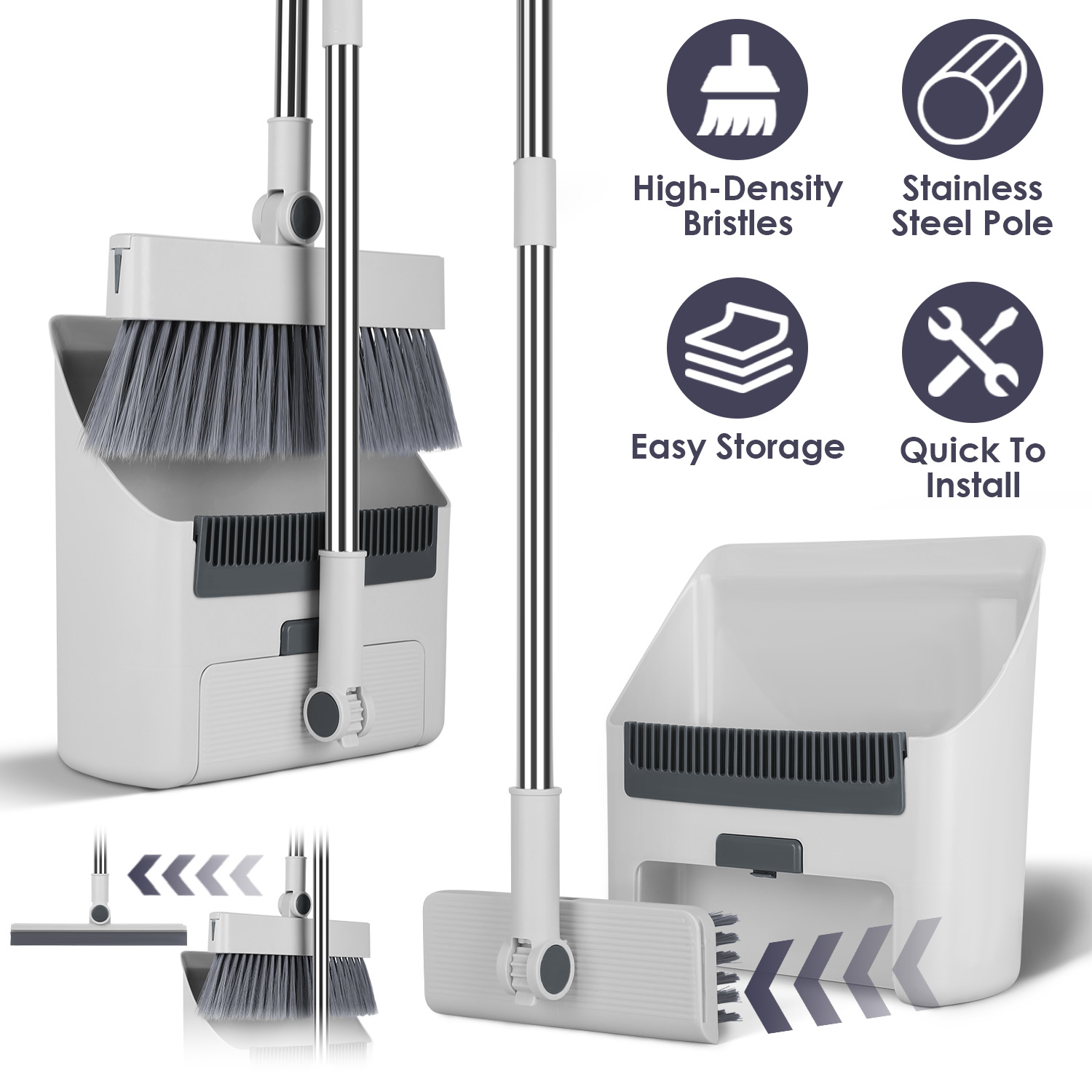 Tired of juggling multiple cleaning tools? Featuring high-efficiency cleaning bristles with 4-layer high-density design, this set efficiently captures and lifts various types of debris, including dust, dirt, and hair. The built-in comb teeth on the dustpan make it easy to remove tangled debris and trapped hair from the bristles without direct hand contact. Suitable for a variety of scenarios such as kitchens, bedrooms, bathrooms, offices, and gardens.