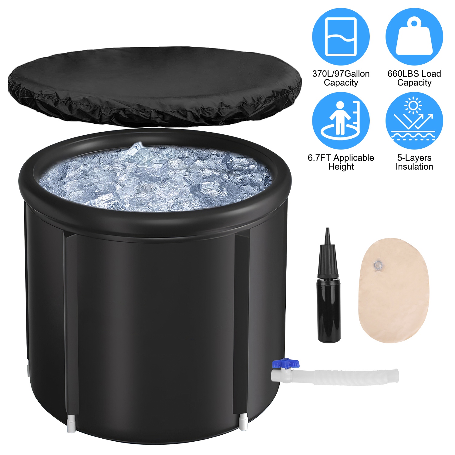 With 370L/97Gal large capacity, this large ice bathtub is suitable for most adults with the height under 6.7ft and provides ample space for immersion in cold water therapy. Featured with 5-layer insulation system and sturdy construction, our ice water bath tub can not only prolong your ice therapy experience, but also provides 660lbs load capacity and enduring lifespan. Protective cover prevents any interruption by unwanted debris, like leaves and bugs. Easy installation and portable design make this spacious ice bathtub perfect for home, gym, camping, RV and so on.