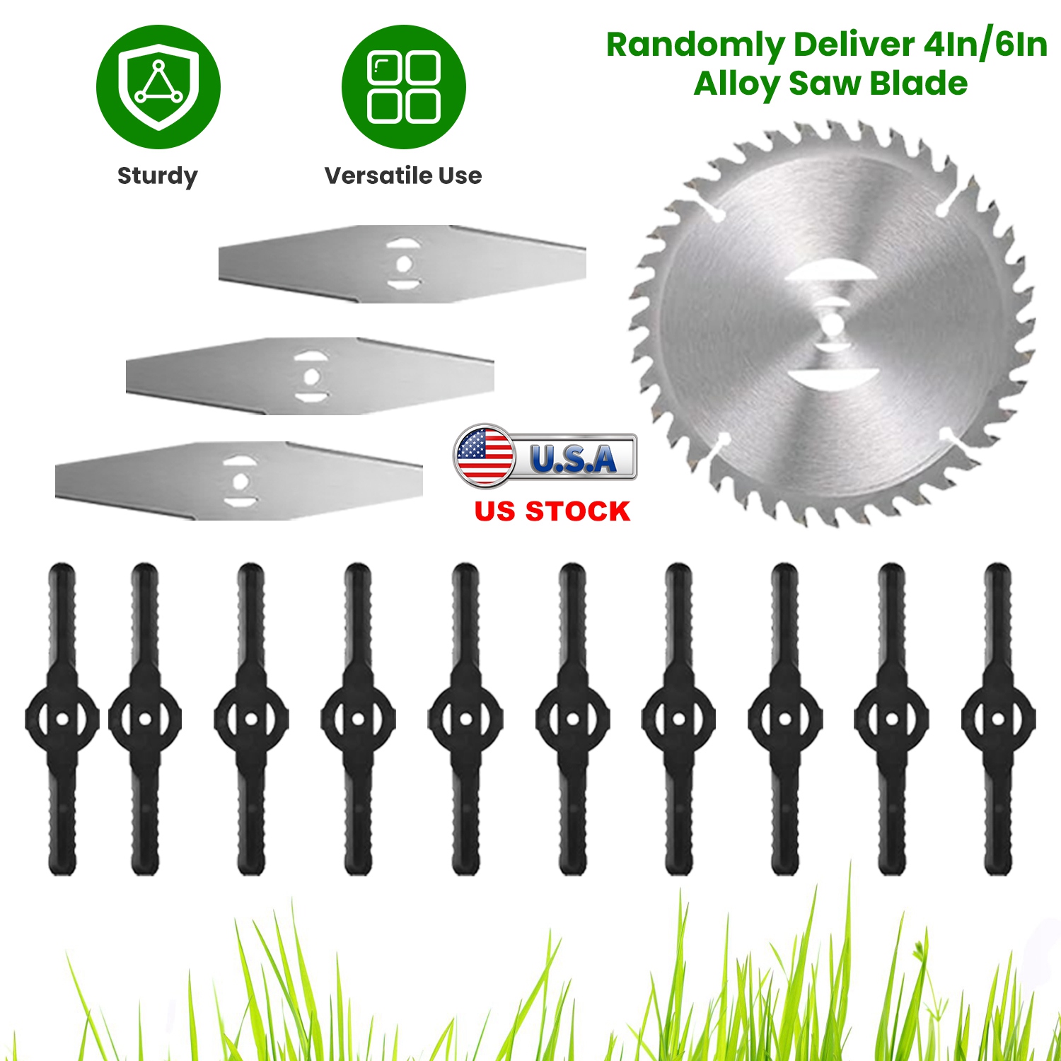 14Pcs Grass Trimmer Blades Accessories Weed Cutter Attachments 10Pcs 5.35In Plastic Blades 3Pcs 6In Stainless Steel Blades 1Pc 4In/6In Alloy Saw Blade