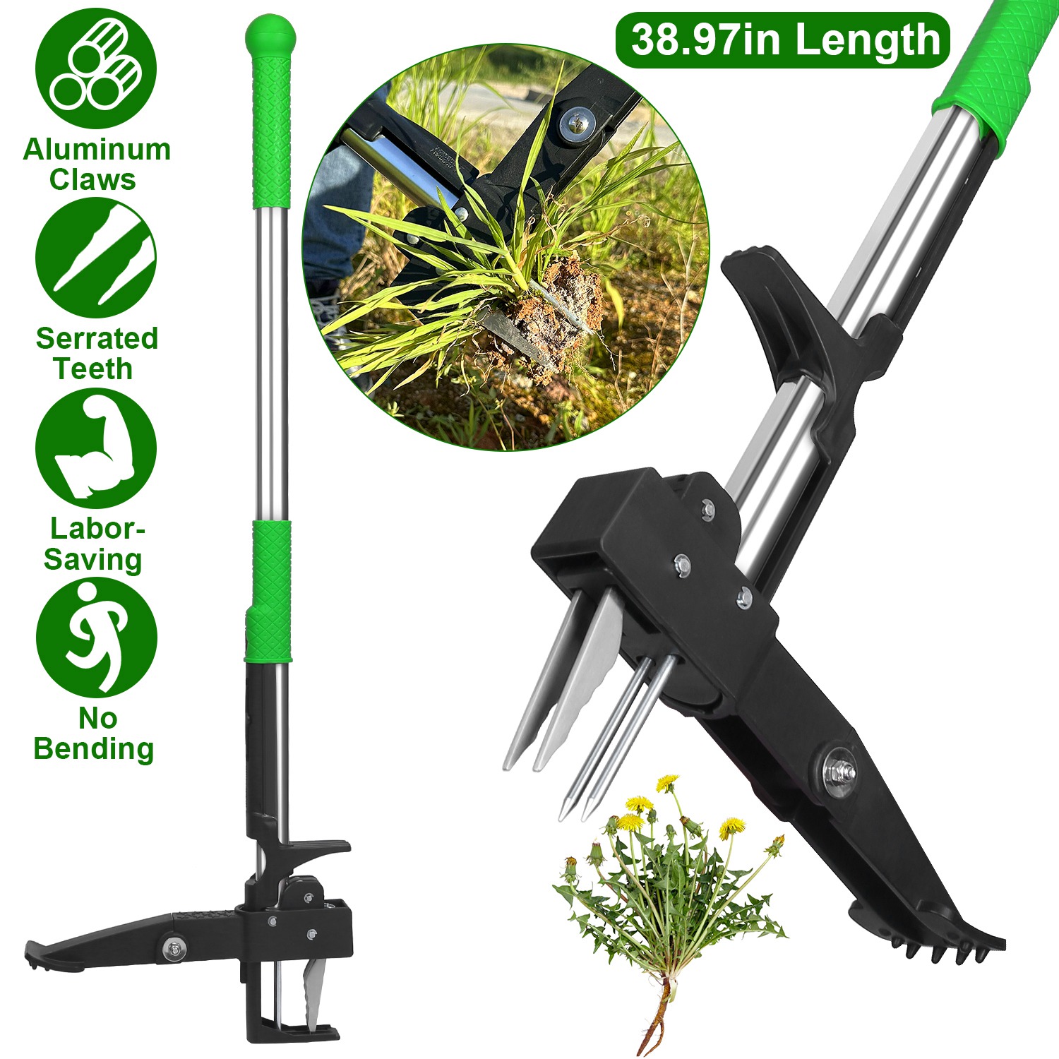 Home > 38.97in Aluminum Weed Puller Stand Up Weeder Without Bending Kneeling Manual Weed Remover Tool with 4 Claws for Lawn Yard Garden Patio
