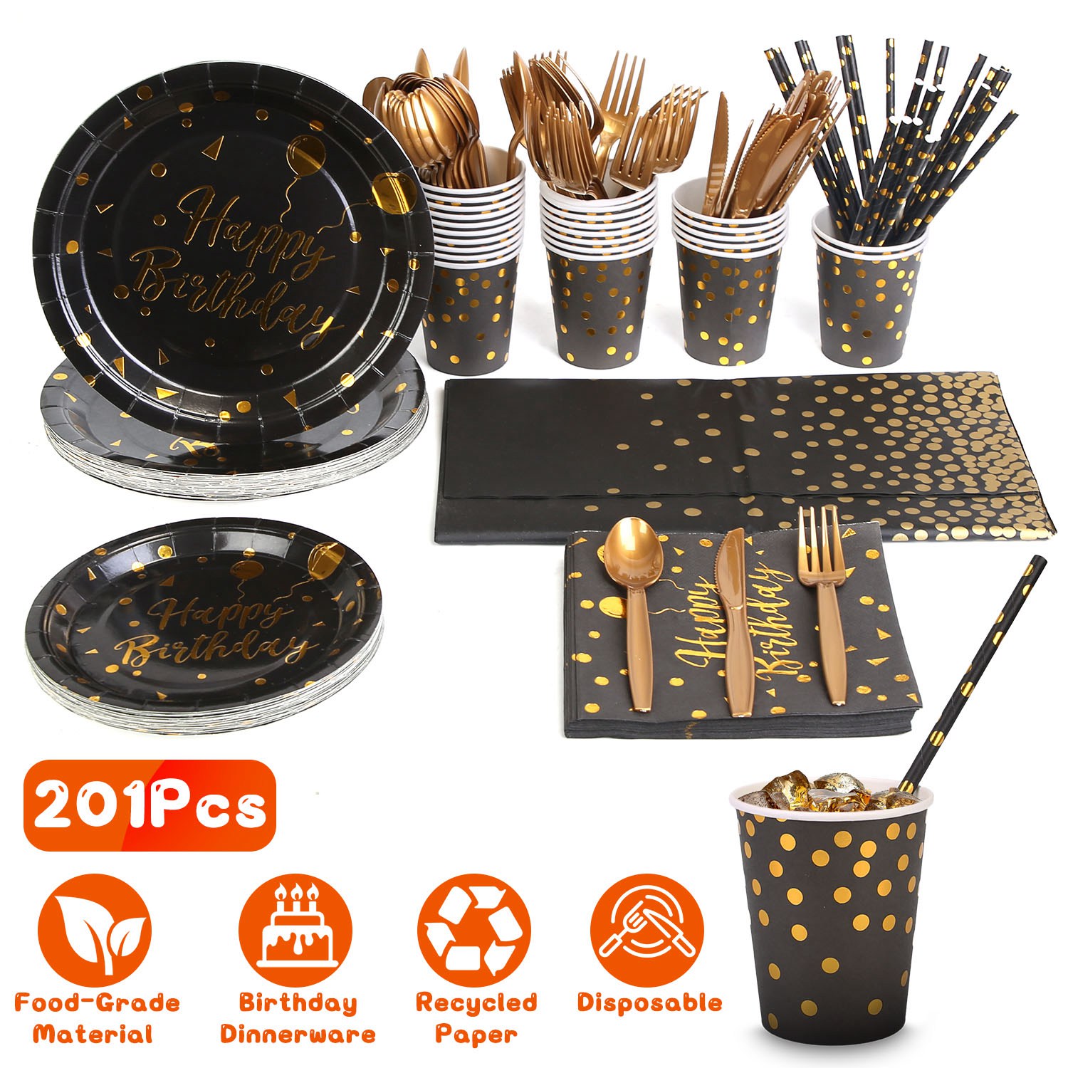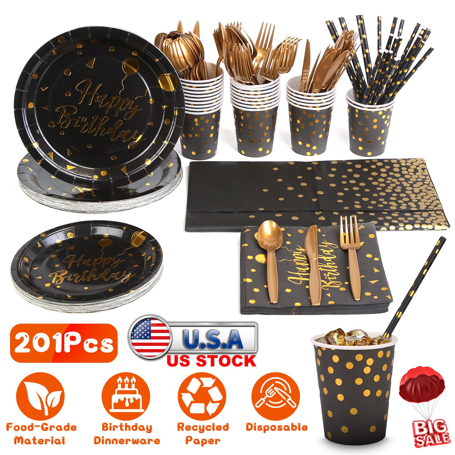 201PCS Black Gold Birthday Party Supplies For 25 Guests Happy Birthday Disposable Dinnerware Set Paper Plates 9OZ Cups Straws Napkins Forks Knives Spo 201PCS Black Gold Birthday Party Supplies For 25 Guests Happy Birthday Disposable Dinnerware Set Paper Plates 9OZ Cups Straws Napkins Forks Knives Spo 201PCS Black Gold Birthday Party Supplies For 25 Guests Happy Birthday Disposable Dinnerware Set Paper Plates 9OZ Cups Straws Napkins Forks Knives Spo 201PCS Black Gold Birthday Party Supplies For 25 Guests Happy Birthday Disposable Dinnerware Set Paper Plates 9OZ Cups Straws Napkins Forks Knives Spo