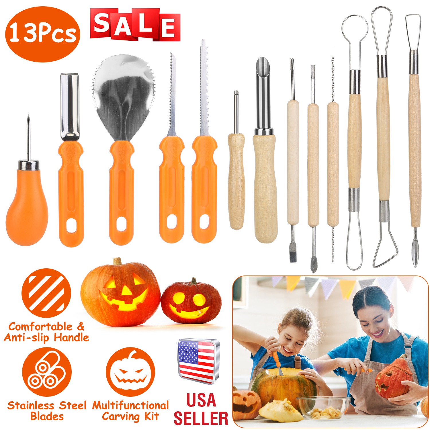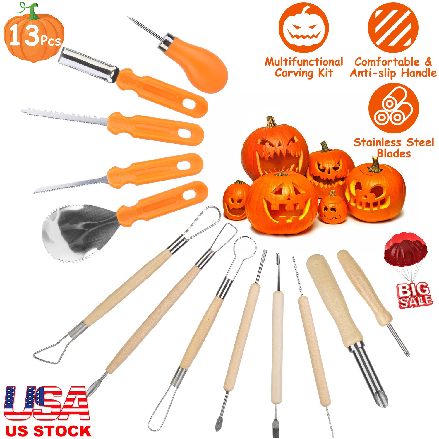 Home > 13Pcs Halloween Pumpkin Carving Kit Stainless Steel Carving Kit Pumpkin Sculpting Cutting Kit Halloween Decorative Tools