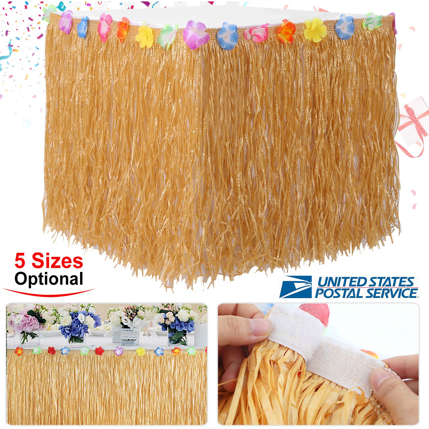 Home > Grass Table Skirt Hawaiian Luau Party Decorations Supplies w/Hibiscus for Buffet BBQ Tiki Bar Beach Birthday Party Use
