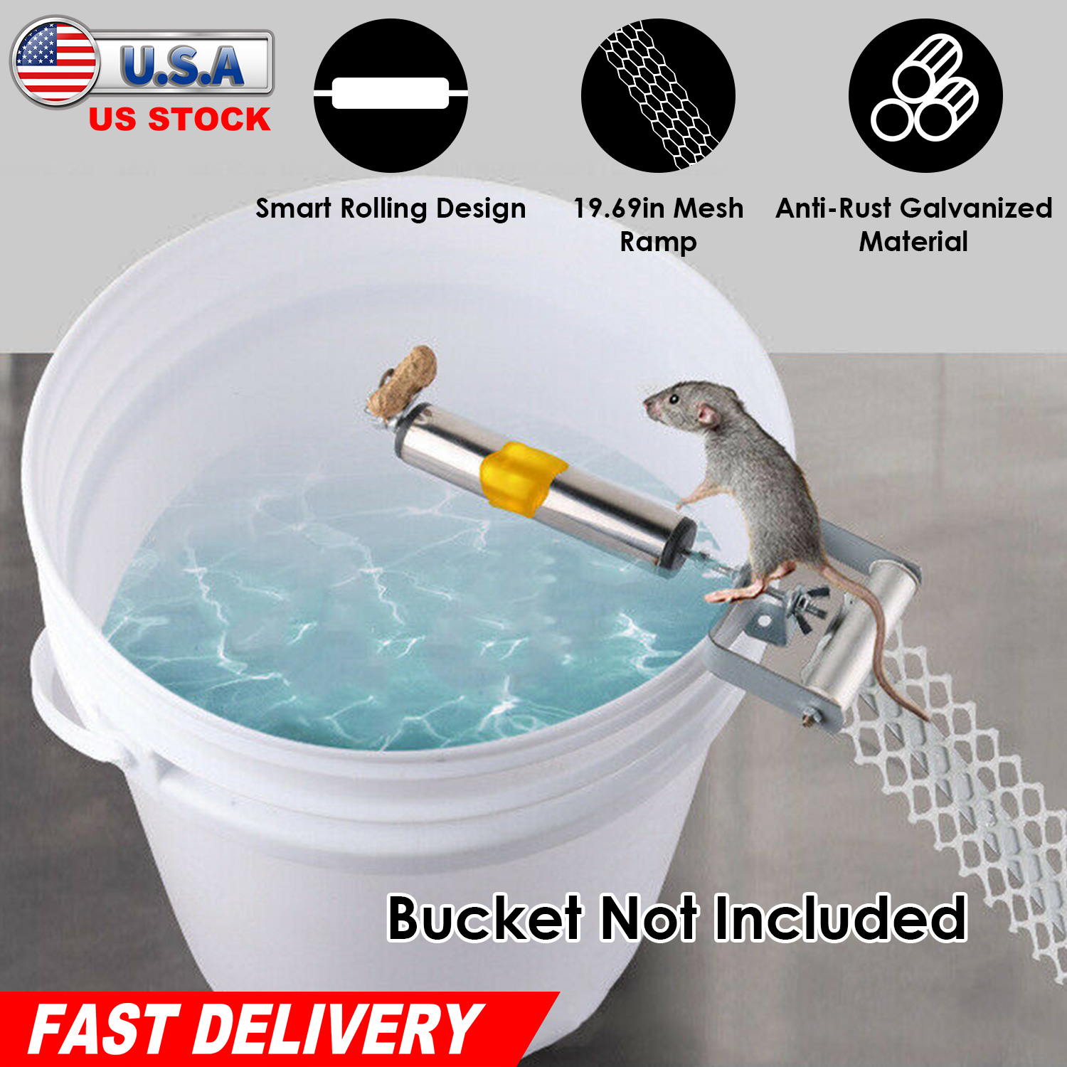Do you have problems with rodents, do you have mice or rats chewing and doing expensive damage to your property? Our rolling rat trap can give you a great solution! Come with a 19.69in long mesh ramp and a roller, just fill your bucket with water and put bait on it, then you can easily trap multiple mice at one night in warehouse, restaurant, etc..